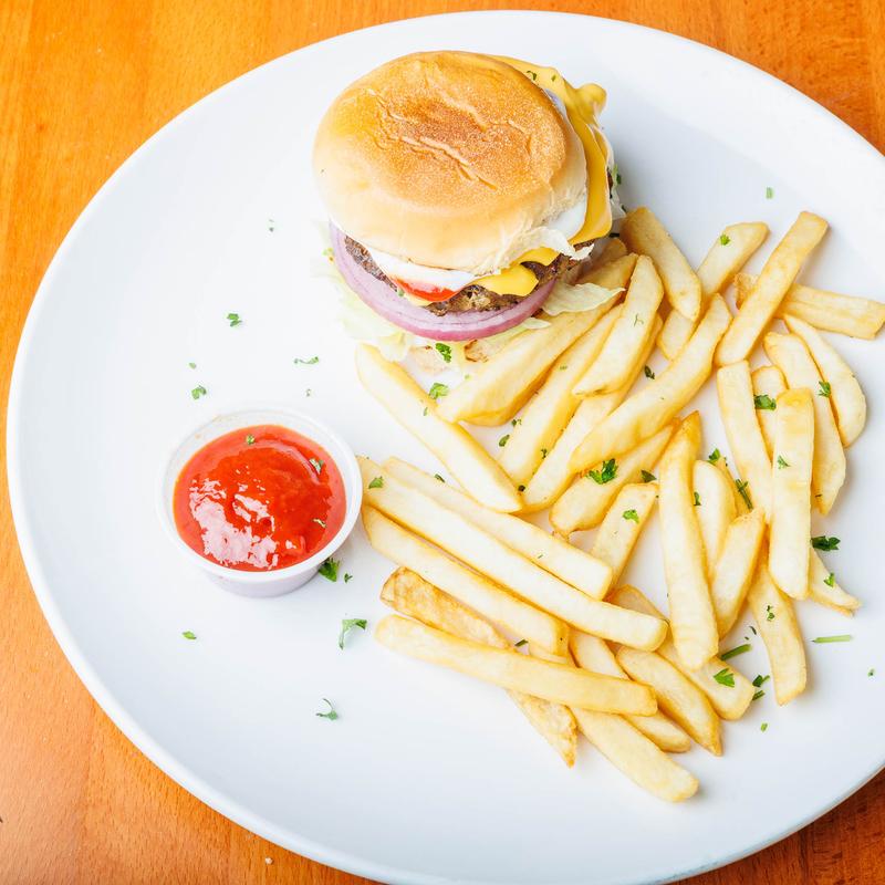 Lettuce, tomato, onions & ranch dressing. Served with French fries.