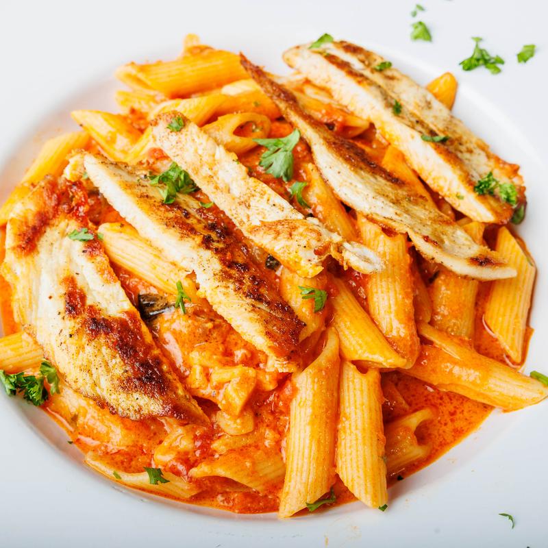 Grilled chicken, spinach and mozzarella tossed in a creamy pink sauce.